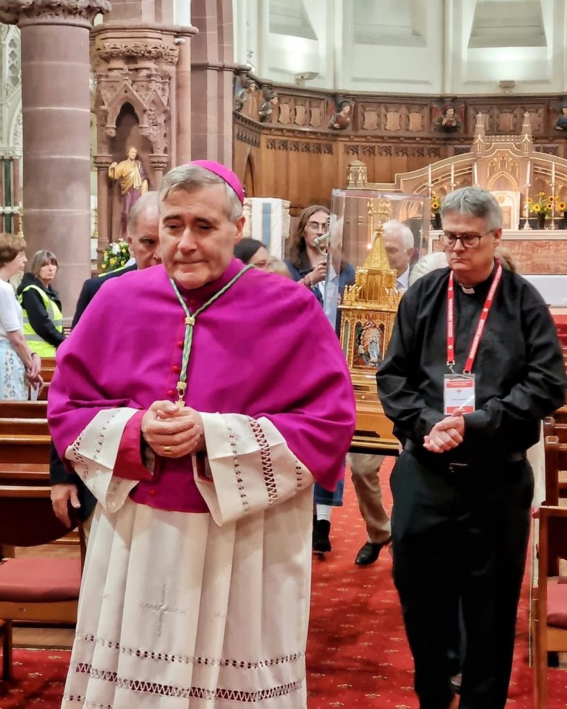 The relics of Saint Bernadette are a tangible link with one who so lived united with Christ on earth and is forever united with Him in Heaven, bringing us the same message entrusted to her if not to build a church, then to each make a place for the Eucharist at the heart and centre of our lives. We are invited to walk with Bernadette – no matter what sacrifices may be involved – to put the Holy Eucharist first in our lives and so literally first in our week each Sunday. To be prepared with Our Lady’s help to receive Him anew with faith and love, with attentiveness and amazement. For this renewal of our Diocese – the only authentic renewal of the Church’s life – may Saint Bernadette pray for us!