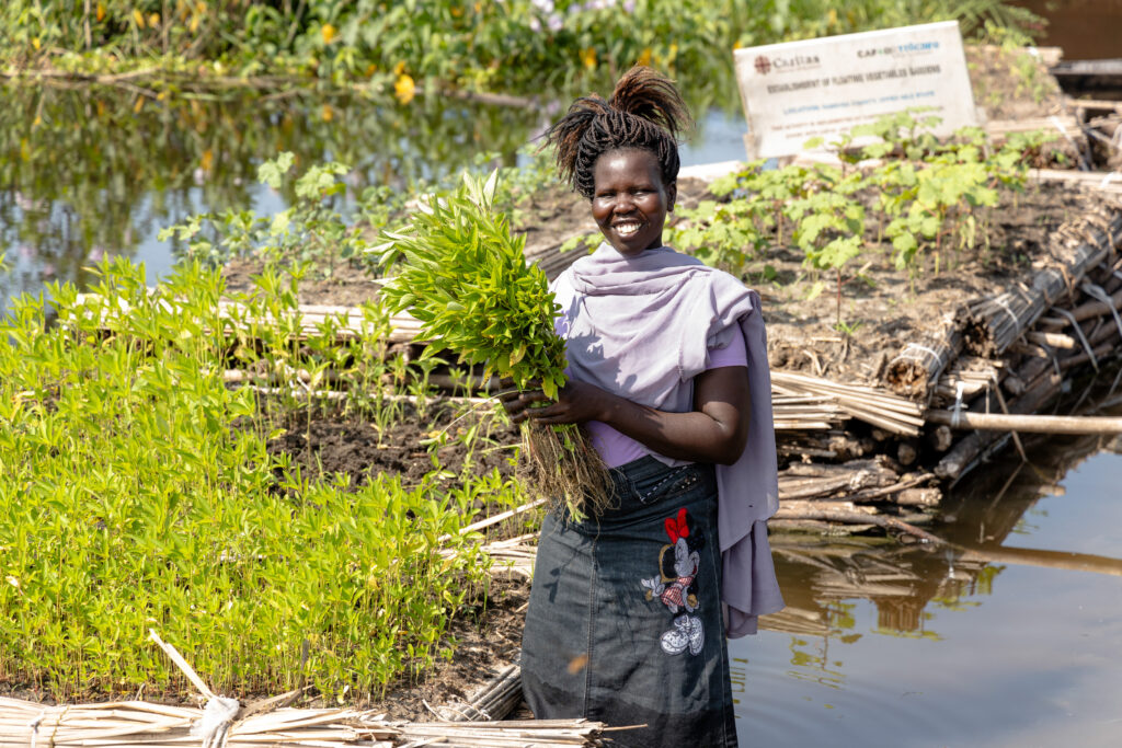 With support from our local experts, Rejoice and her community created floating gardens. These are simple beds that rise above floodwaters, so amazingly, they can grow food even when the land is underwater.