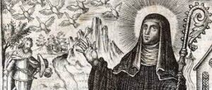 Fantastic stories surround the saint. One tells of how she overslept and woke to find the sun shining on her. Her veil slipped but instead of falling to the ground was suspended on a sunbeam until she collected it. Another story relates how she was surrounded by “fire from heaven” as she knelt in prayer beside the body of a dead child and when the flames abated she returned the child back alive to its mother.